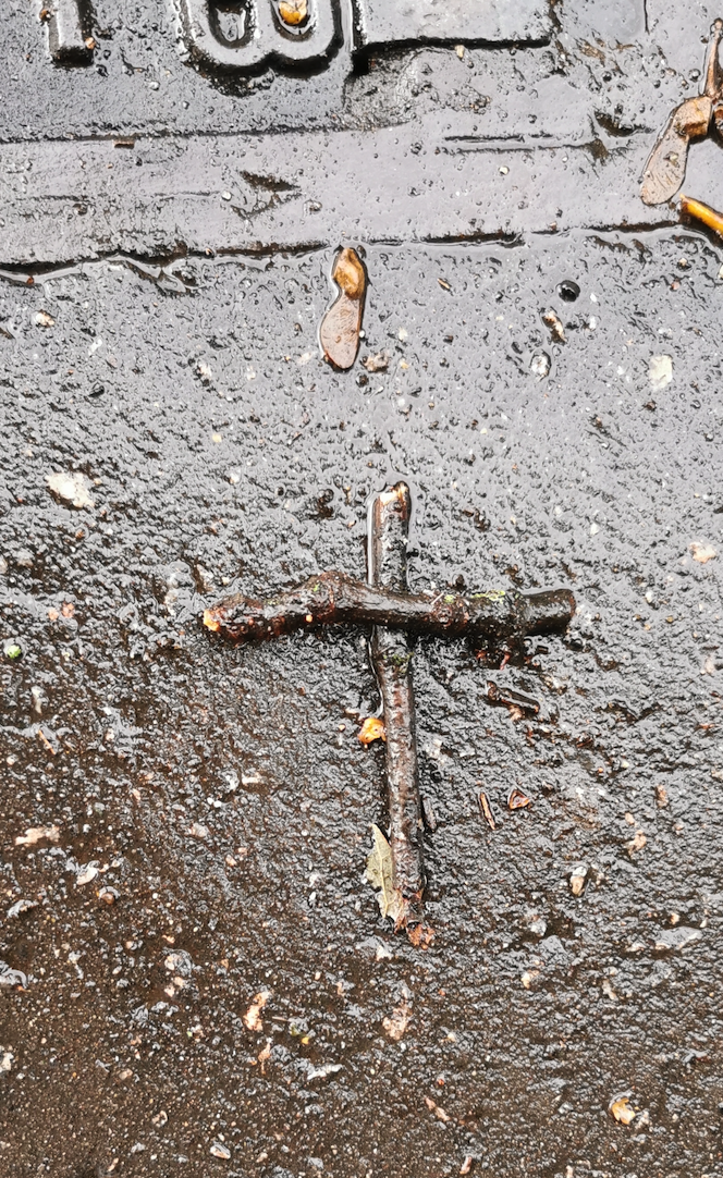 I often find crosses formed on the ground when I am out and about. Every time I see one, I feel blessed, and the experience lifts my spirit for the rest of the day. I do not know who or what is behind these beautiful signs, but I sincerely appreciate what they represent. The sight is profoundly humbling and reassuring.