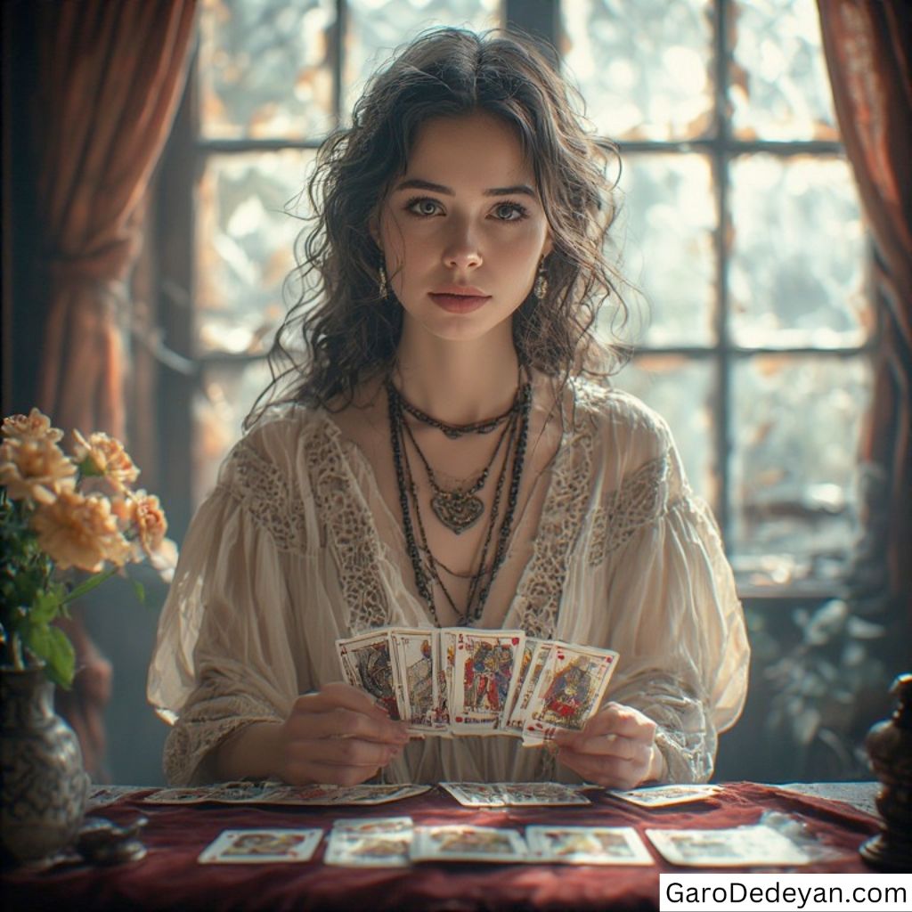 She produced a pack of tarot cards and began laying them on the table. As she did so, she started the reading.